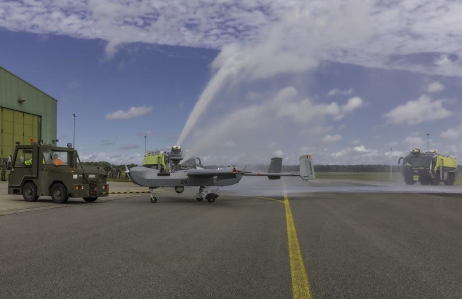 L’avion a ensuite été remorqué vers le hangar et a été salué par des jets d’eau exécutés par les pompiers de la base. Tout ceci était empreint d’une grande émotion de la part du personnel de l’unité qui a mis en œuvre ses drones de construction israélienne depuis près de 20 ans pour certains.