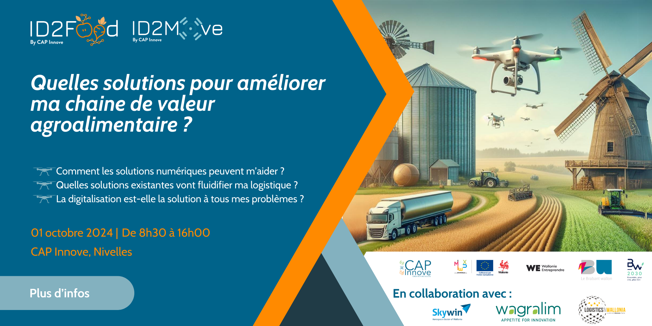 Ce Workshop est coorganisé par ID2Move et ID2Food avec le soutien des pôles de compétitivité Wagralim, Skywin et Logistics in Wallonia.